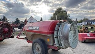 Fedél alatt tárolt , egygazdás , 700 literes Holder axiál ventilátoros permetező nyomkövetős vonórésszel , kitűnő állapotban eladó.