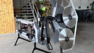 3 speciálisan edzett fűrészlappal van felszerelve (80db fogakkal), amelyek mindegyike 600 mm átmérőjű és a súlya 14 kg. A fűrész tényleges munkaszélessége kb 1750 mm.